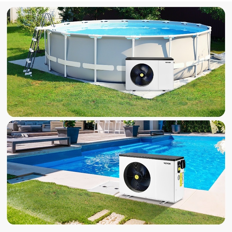 Бързо нагряване: С капацитет на нагряване от 2,51-11,38 kW, тази помпа за плувен басейн бързо повишава температурата на водата, осигурявайки топло и комфортно изживяване при плуване в надземни или подземни басейни, вариращи от 25 m³ до 50 m³.