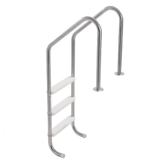 Стълба за басейн с 3 стъпала с двойни парапети: Тази стълба за басейн разполага с 3 стъпала и двойни парапети от двете страни. Всяко стъпало е снабдено с нехлъзгаща се гумена постелка, осигуряваща сигурно влизане и излизане от басейна, дори под водата, предотвратявайки случайно подхлъзване