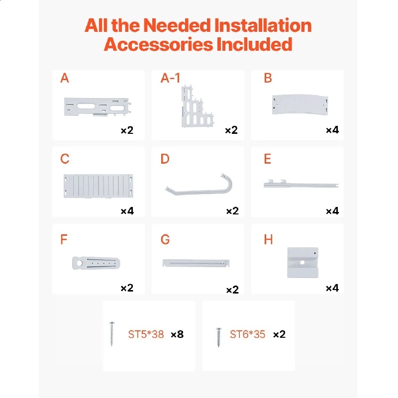 Пълен комплект аксесоари: След доставка можете бързо да сглобите стълбата. Нашите закрепващи плочи се предлагат с предварително пробити отвори, така че е необходимо само да измерите и пробиете за лесен монтаж. За бетонни или плочки подове е необходимо да закупите собствени разширителни болтове за монтаж.