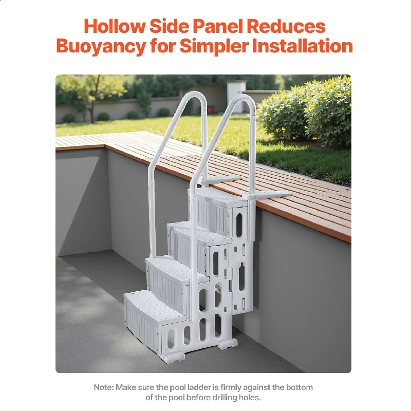 Надеждна товароносимост до 180 кг: С товароносимост до 180 кг, това стълбище за басейн е първият избор както за деца, така и за възрастни. Удебелените стъпала са проектирани с неплъзгащи се текстурирани повърхности, за да се гарантира безопасност при всяка стъпка.