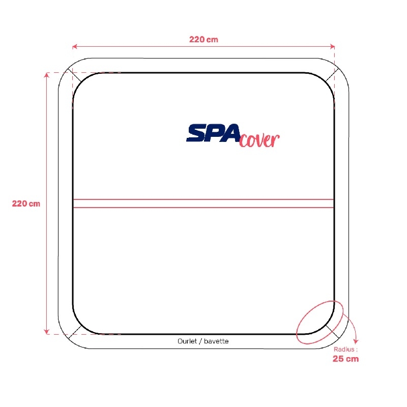 Технически характеристики на покривалото за спа център 220 см x 220 см x R25 см