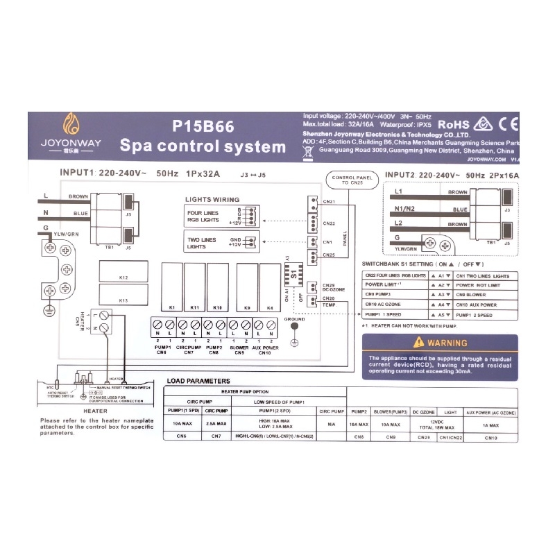 JOYONWAY P15B66 Контролен панел за спа център
