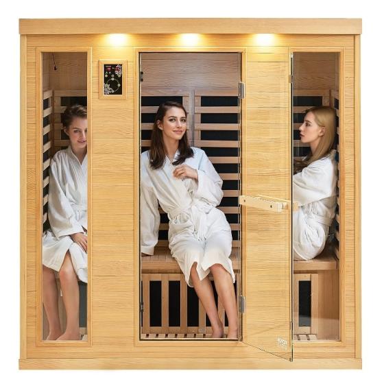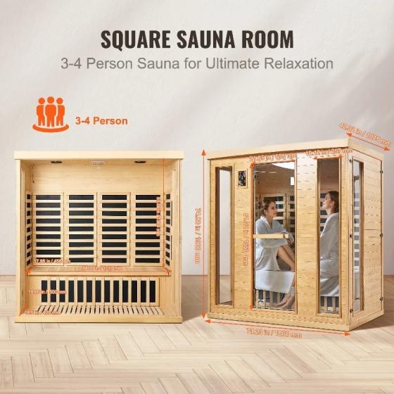 Перфектна за 3-4 души: Просторният квадратен дизайн не заема твърде много място, което позволява на вас и вашите приятели или семейство да се насладите на върховно, релаксиращо сауна изживяване по всяко време и навсякъде. Може удобно да бъде инсталирана във вашата всекидневна, спалня, мазе или дори в лична фитнес зала.