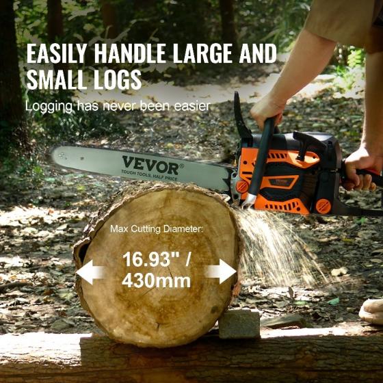 Лесно рязане: Справяйте се с лекота както с подрязване, така и със задачи. Диаметърът на рязане на бензиновия верижен трион достига 430 mm, което го прави универсален за всички ваши нужди при рязане на открито.