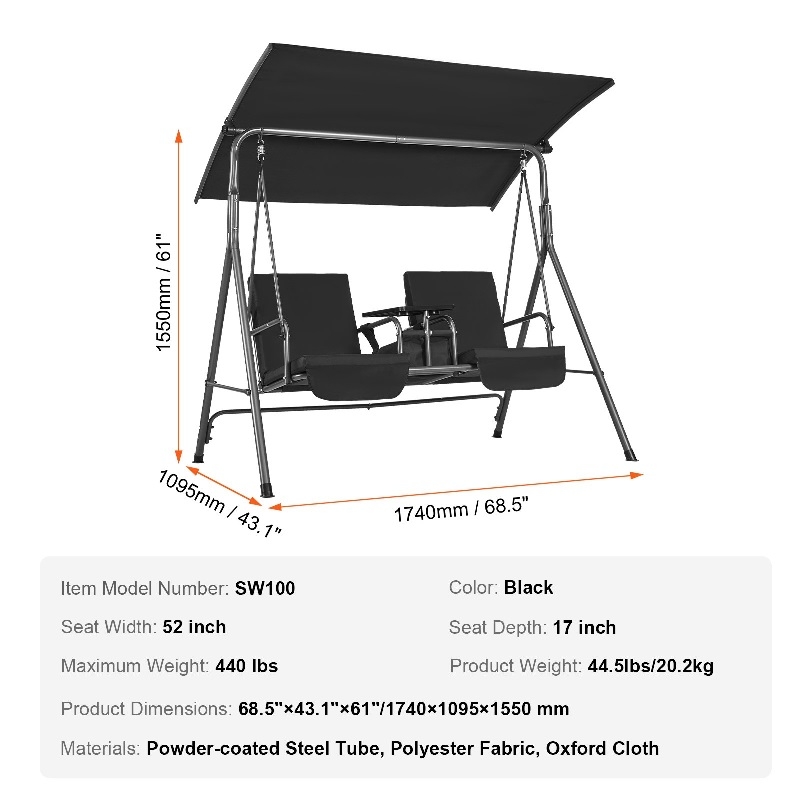 Плат за използване на открито: люлките за вътрешен двор VEVOR със сенник разполагат с просторна седалка и облегалка, и двете изработени от плат Оксфорд за използване на открито, осигурявайки прохладно и дишащо изживяване дори през лятото. Извитият дизайн на седалката и облегалката се приспособяват към гръбнака ви за удобно сядане.
