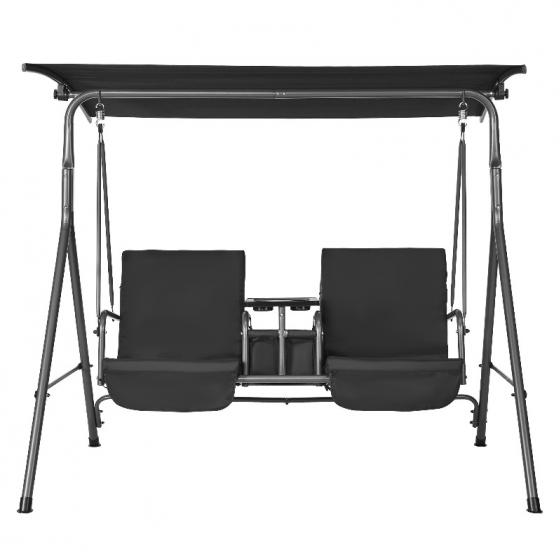 Конструкция от легирана стомана: Изработена от издръжлива легирана стомана, тази външна люлка за вътрешен двор разполага със здрава триъгълна рамка, устойчива на високи температури и абразия. Издържа на външни елементи, без да ръждясва, и издържа до 200 кг, като побира удобно 2 души за забавление с люлеене.