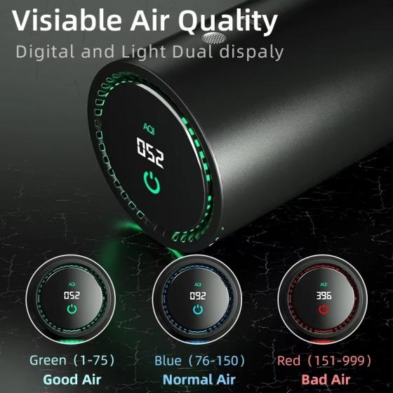 Интелигентен режим на пречистване - Вграден сензор за качество на въздуха, настроен за интелигентно оборудване, продуктът автоматично превключва работното оборудване и цвета на околната светлина според индекса за качество на въздуха;