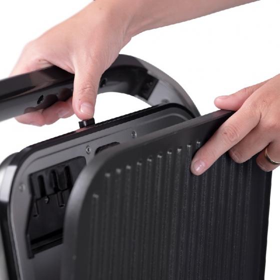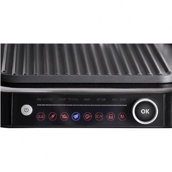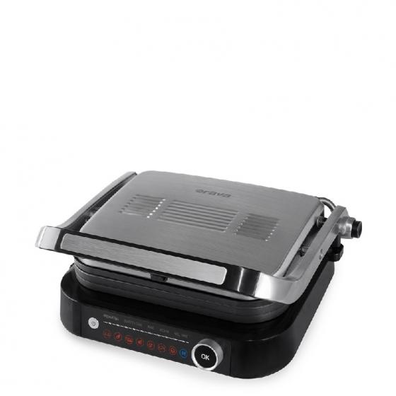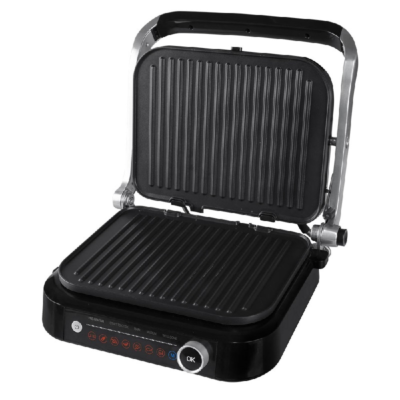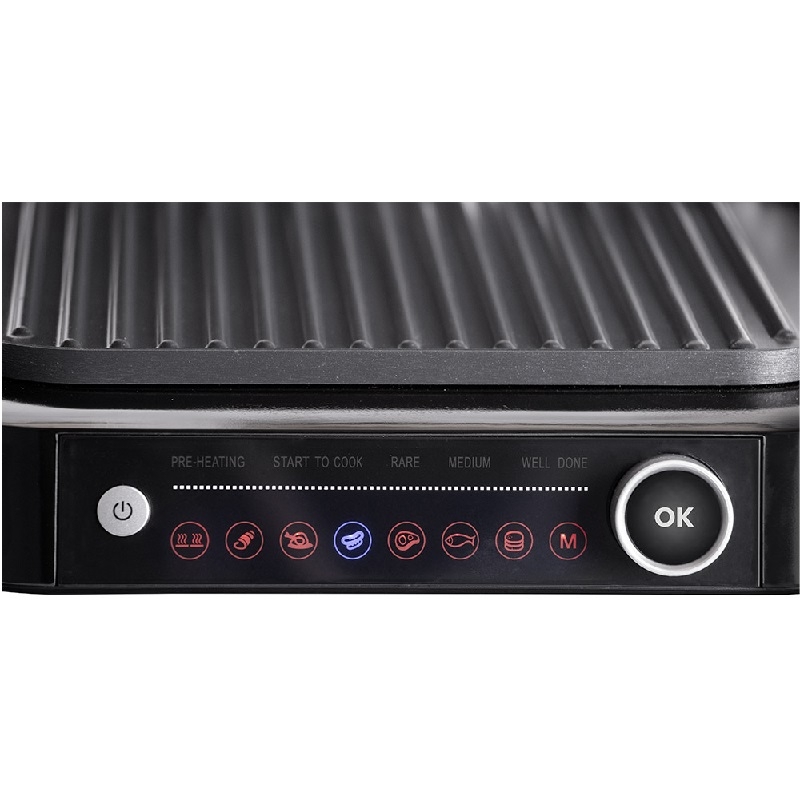 Мощен електрически настолен контактен грил. Функция отворен и контактен грил. Електрически контролни функции. 6 автоматични програми за печене на различни видове ястия. Функцията Размразяване ви позволява да размразявате храна бързо и ефективно. Грил плочи с незалепващо покритие. Термоизолирана дръжка. Тава за отцеждане на сок и масло. Автоматично изключване. Лесни за почистване, подвижни грил плочи. Неплъзгащи се гумени крачета за допълнителна стабилност. Захранване: 220 - 240V~ 50/60Hz, 1800 - 2100 W.