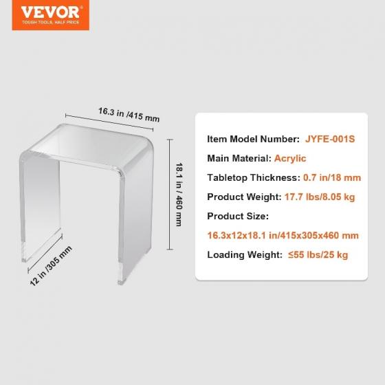 Елегантен и опростен дизайн: С размери 415x305x460 мм, нашата акрилна крайна маса не само осигурява съхранение на дребни предмети, но също така служи за различни функции, като показване на декорации и служи като работна станция. Гладките ръбове значително намаляват риска от ежедневни удари и наранявания.