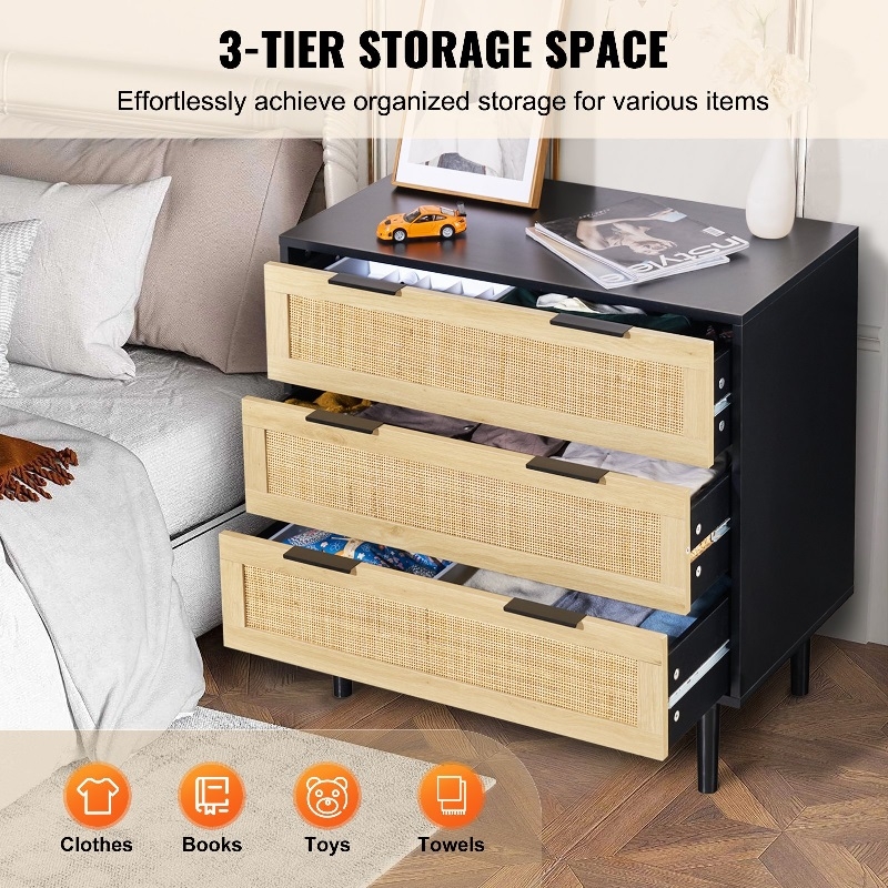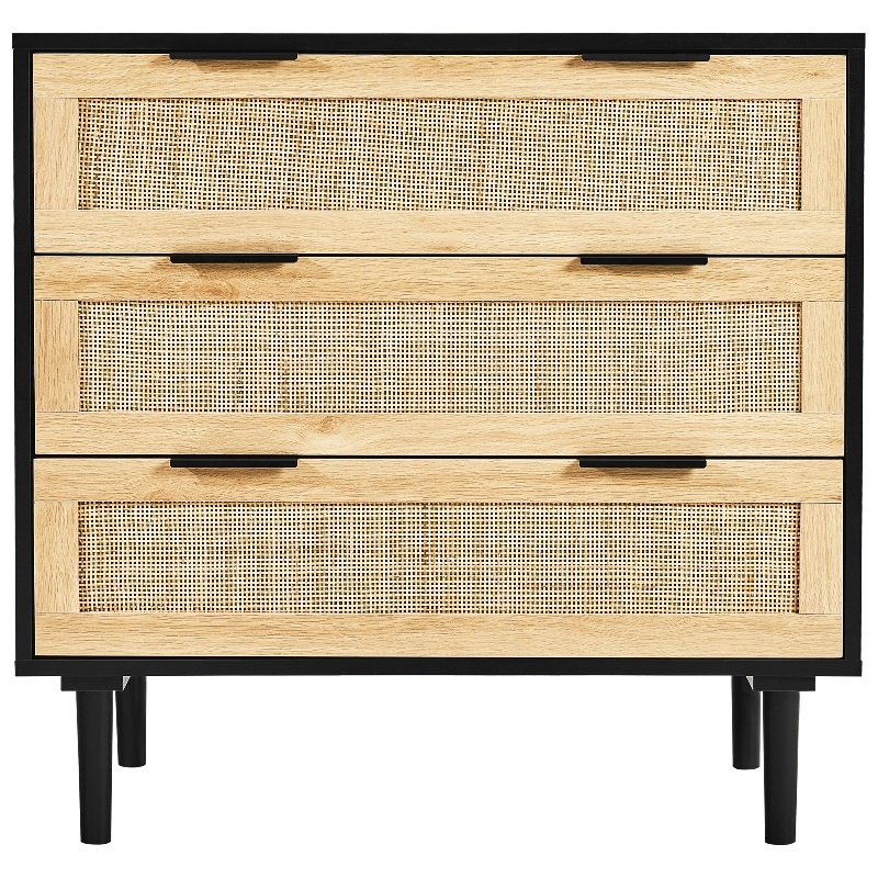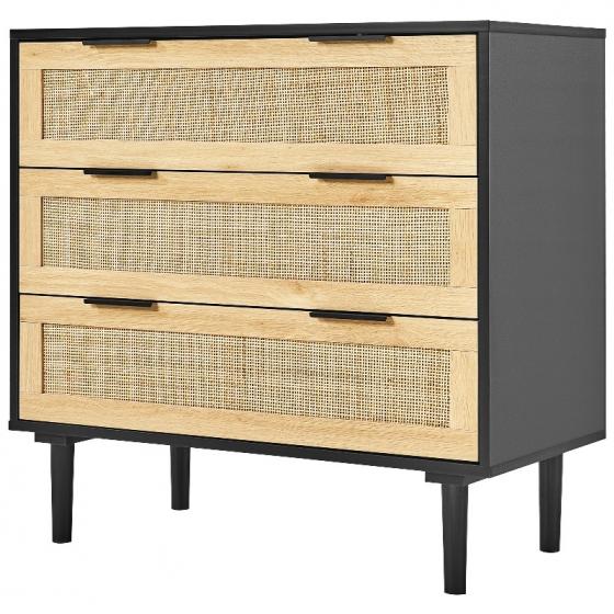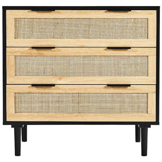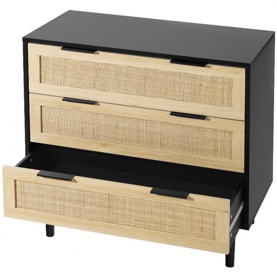 Голям капацитет за съхранение: Този скрин от ратан разполага с три просторни чекмеджета, идеални за организиране на вашето пространство. Независимо дали във вашата спалня, всекидневна или коридор, това е шикозно допълнение, което побира до 5 кг на чекмедже и до 15 кг отгоре - идеално за ежедневна употреба.