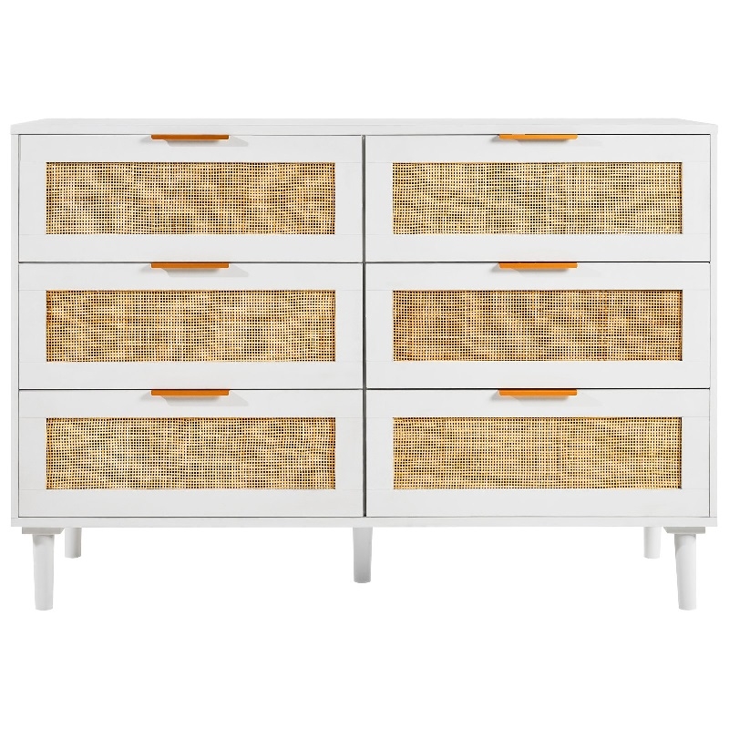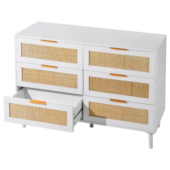Голям капацитет за съхранение: Този скрин от ратан разполага с шест просторни чекмеджета, идеални за организиране на вашето пространство. Независимо дали във вашата спалня, всекидневна или коридор, това е шикозно допълнение, което побира до 5 кг на чекмедже и до 15 кг отгоре - идеално за ежедневна употреба.