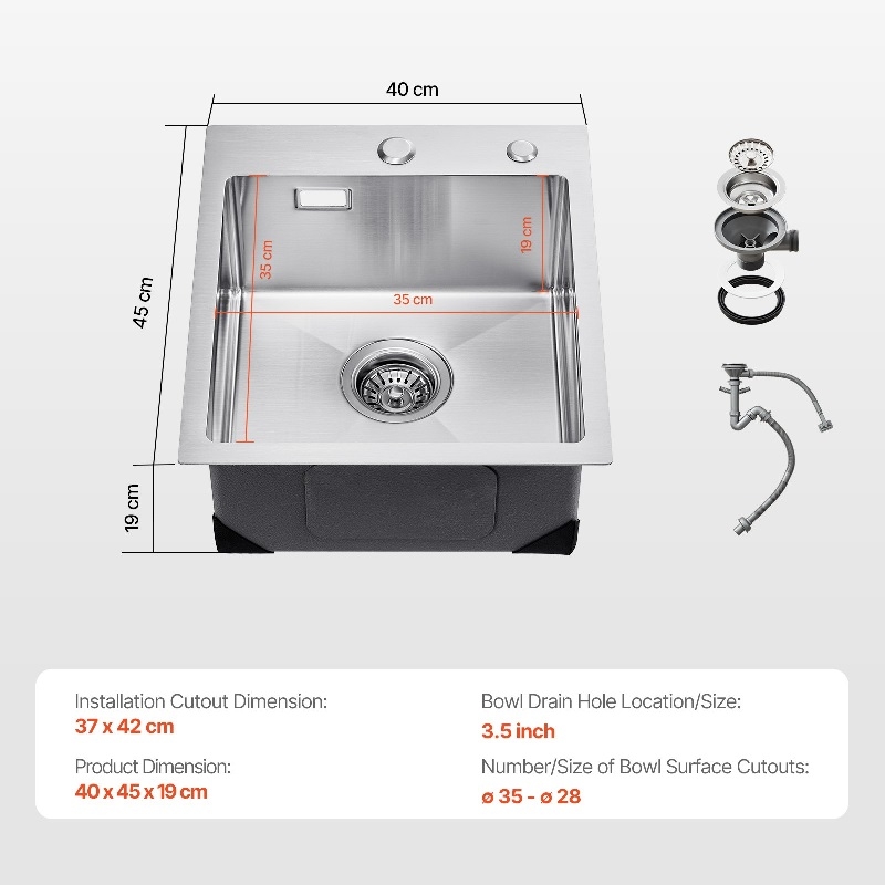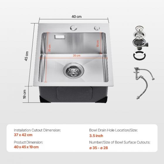 Голям капацитет: Външен размер на мивката: 40x45, 55х45 или 68х45 см. Вътрешен размер: 37х42, 52x42 или 65x42 см. Дълбочина на купата: 19 см. Този кухненски умивалник е достатъчно дълбок, за да побере чаши, тенджери и тави за печене, отговаряйки на различни нужди за миене.