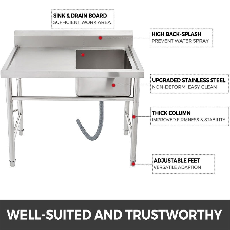МНОГО АКСЕСОАРИ - С този пълен комплект от мивка за помощна подготовка ще получите и цял комплект водопроводна тръба, цедка и капак и т.н. Дизайнът го прави подходящ за стандартен 1-1/2" накрайник/сифон. Можете да сглобите тази индустриална мивка бързо и лесно.