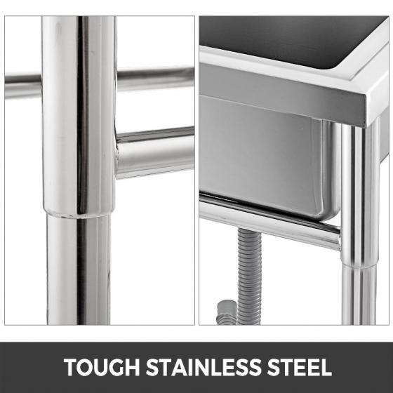 СТАБИЛЕН И РЕГУЛИРУЕМ ДИЗАЙН - Дизайнът с четири крака прави мивката от неръждаема стомана стабилна на пода. Има кръстосани скоби за крака за допълнителна стабилност. Тези крака имат регулируеми нивелири, за да останат стабилни на неравни подове.