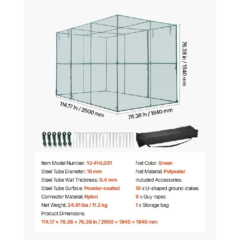 Просторен интериор: С размери 2900 x 1940 x 1940 мм, тези градински клетки за култури осигуряват достатъчно пространство за виреене на зеленчуци, плодове, цветя и други растения без външни смущения.