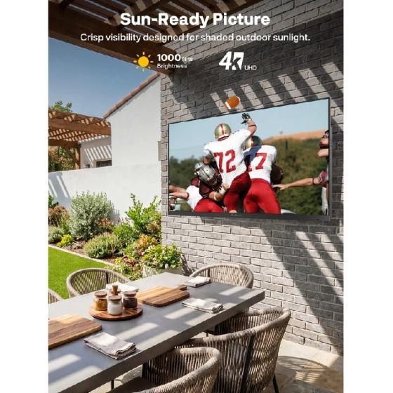 Насладете се на кристално чиста 4K резолюция, предназначена за ярки външни среди, като например вътрешни дворове и градини.