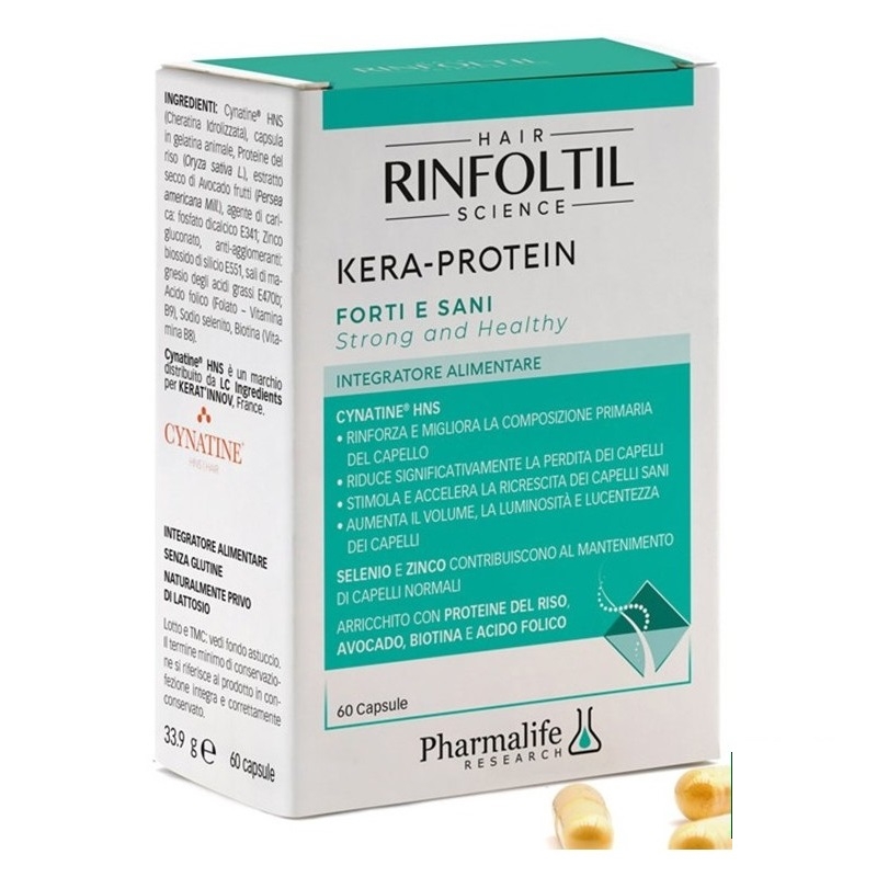 RINFOLTIL Kera-Protein Forti e Sani на италианската марка Pharmalife Research е специално разработена хранителна добавка под формата на капсули в подкрепа на здравината, плътността и красотата на косата