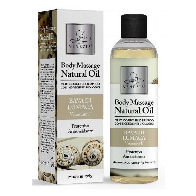 Естественото eudermic масажно масло за тяло с екстракт от охлюв от Lady Venezia има целенасочено, подхранващо и антиоксидантно действие, което допринася за тонизиране на кожата, оставяйки я компактна и отпусната.