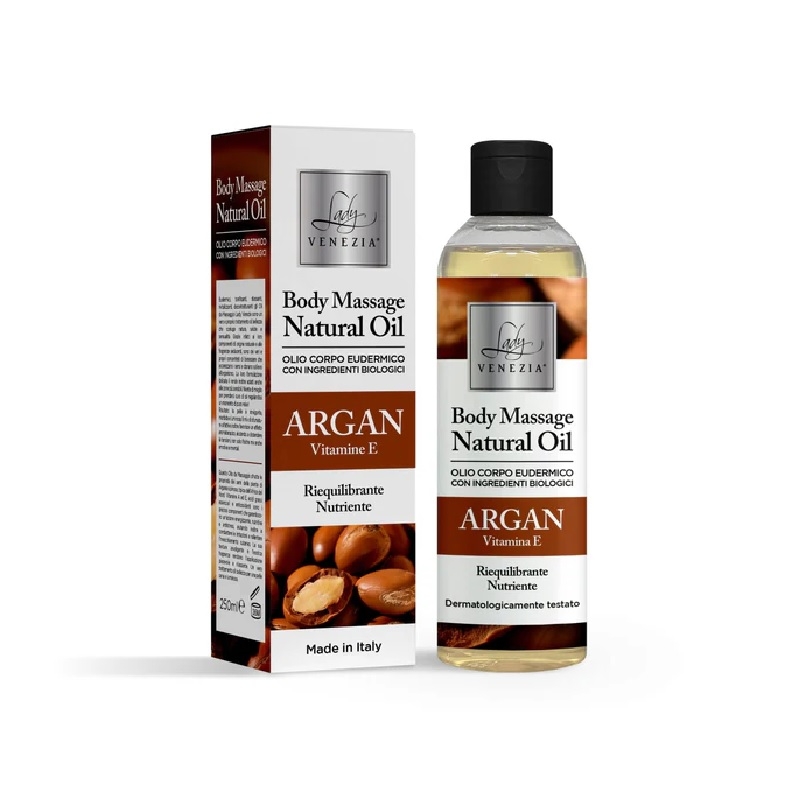 Натуралното масажно масло за тяло с арган използва свойствата на семената на растението Argania spinosa, характерно за Северна Африка. Витамините А и Е, есенциалните мастни киселини и антиоксидантите са ценните компоненти, които гарантират енергизиращо, подхранващо и антистресово действие, като също така помагат в борбата с раздразненията и забавят стареенето на кожата. Неговата обгръщаща текстура и екзотичен аромат правят нанасянето приятно и релаксиращо. Истинско разкрасително лечение за здрава, блестяща кожа.