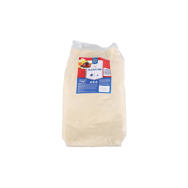 Употреба: 10 гр желатин се накисват в 25-30 мл студена вода за 10-15 мин. След като желатина набъбне се разтваря на водна баня, докато се разтопи. Добавя се към 30-350 мл течност.