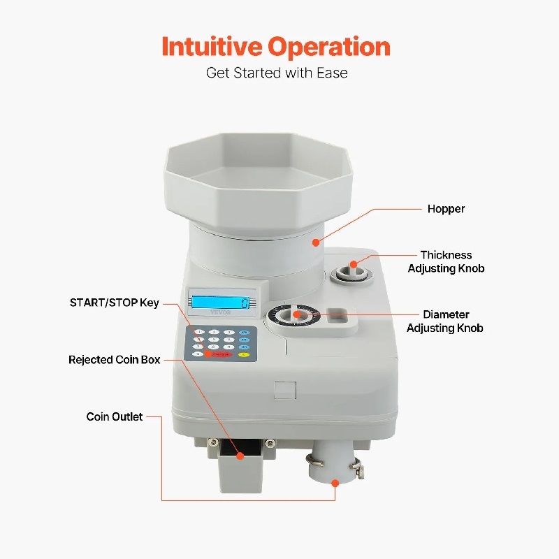 Лесна работа: Нашата машина за сортиране на монети е с опростен дизайн. Просто задайте диаметъра и дебелината на монетата и можете бързо да започнете сортирането. Тази лесна настройка ви позволява без усилие да започнете процеса на сортиране и улеснява броенето и управлението на монетите.