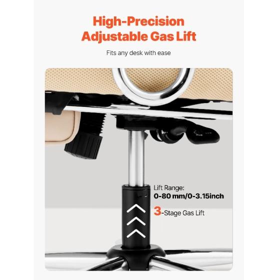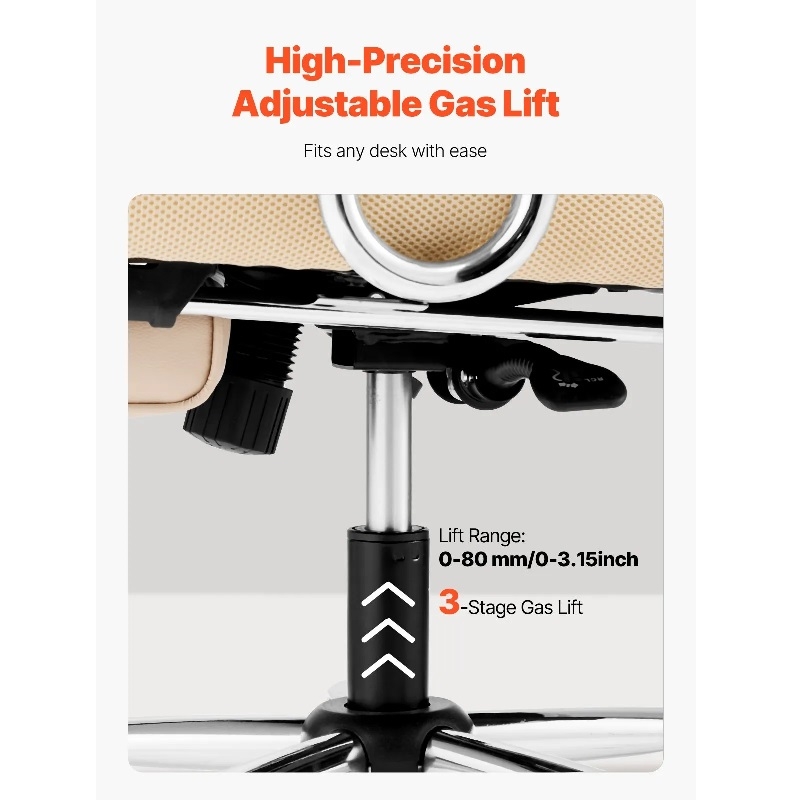 Лесно регулиране на височината: Лесно регулирайте височината на стола с прецизния газов повдигач, предлагащ диапазон от 0-3,15 инча / 0-80 мм, за да е подходящ за хора с различна височина. Независимо дали е за членове на семейството у дома или служители в офиса, този офис стол ще се адаптира към вашите нужди.