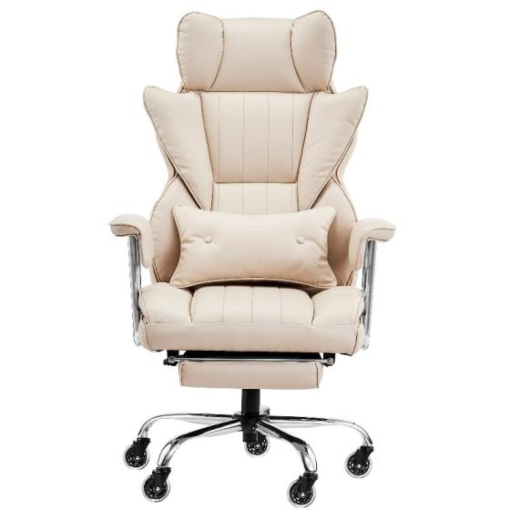 Плавна и тиха мобилност: С въртящи се на 360°, устойчиви на износване и безшумни колела, можете да се плъзгате плавно и тихо по работното си място в този кожен компютърен стол. Здравата метална основа осигурява стабилно изживяване при сядане, помагайки ви да останете фокусирани, независимо какво ви поднася денят.