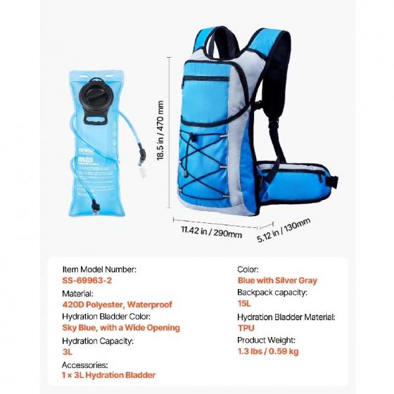 3L практичен мехур за вода: Туристическата раница с мехур за вода включва мехур за вода от TPU за храна, осигуряващ приятно изживяване при пиене. Неговият непропусклив автоматичен затварящ/изключващ вентил и запечатаната технология за откриване избягват рисковете от течове, осигурявайки ви спокойствие.