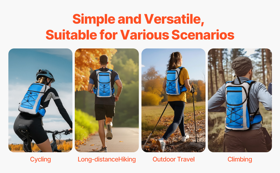 Сигурност и функционалност на открито: Тази хидрораница за туризъм предлага дишаща мрежеста подплата на гърба, за да се намали задушаването, а презрамките за раменете и кръста с подплата от пяна прилягат сигурно, осигурявайки удобно изживяване при носене през целия ден. Щипките за водна тръба и аварийната свирка подобряват ефективността на сигурността, което го прави подходящ за колоездене, туризъм на дълги разстояния, пътуване на открито, планинарство и други нужди, свързани с различни сценарии.