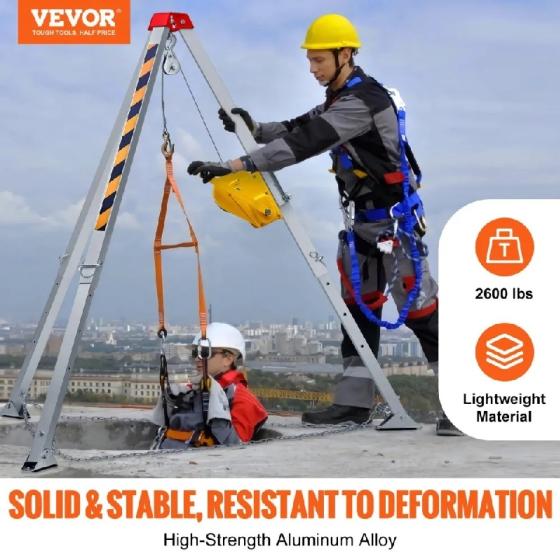 Теглителна способност 1136 кг: Нашият статив за ограничено пространство е вашият надежден спътник в трудни ситуации! Със здрава конструкция и сила на теглене от 1136 кг, той е готов да се справи с всяка спасителна мисия. Стоманеният кабел с диаметър Φ6 мм може да повдигне до 180 кг, което го прави идеален за тежки задачи.