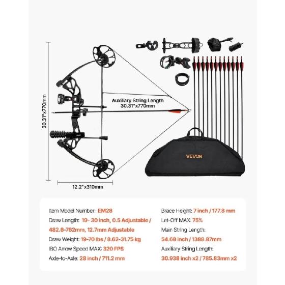 Мощно и изключително представяне: С внимателно проектирана дължина от ос до ос от 711,2 мм и скорост на стрелата от 97 м/с, този комплект ловен лък предлага отлично изпускане и мощност, осигурявайки стабилност и здравина по време на стрелба.